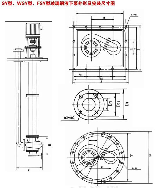 FSY型玻璃鋼液下離心泵--外形尺寸