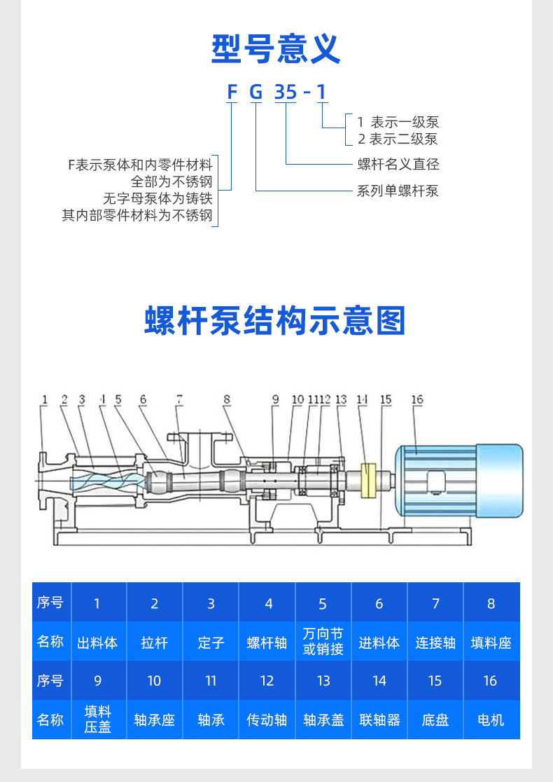 FG型304不銹鋼螺桿泵產(chǎn)品特點(diǎn)說(shuō)明: