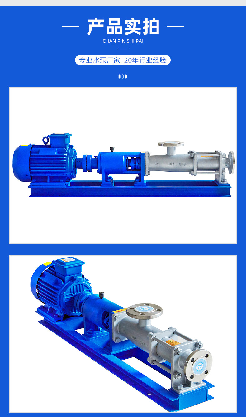 注意事項(xiàng):?jiǎn)温輻U泵的特殊形式:強(qiáng)制喂料螺桿泵,設(shè)有長(zhǎng)方形料斗,連桿上設(shè)有螺旋推進(jìn)器,適用于不能自流但含有液體的介質(zhì),輸送類似渣液時(shí),也可裝攪動(dòng)棒,以防沉淀。當(dāng)渣液濃度較高時(shí),增添能擠壓粉碎的大漏斗,以防堵塞。泵可配各類驅(qū)動(dòng)器,最適于配三相齒輪減速電機(jī)。